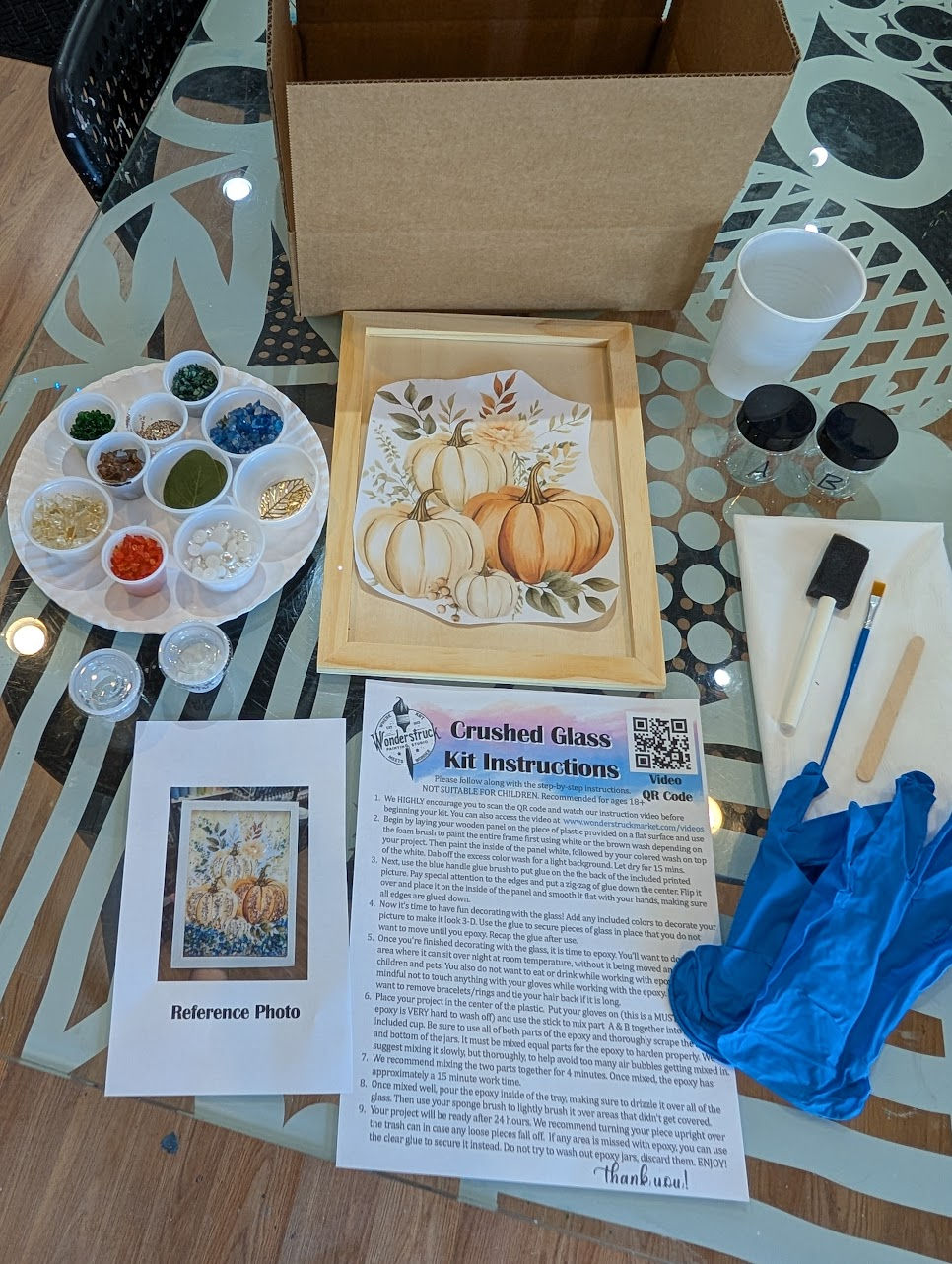 DIY Crushed Glass Panel Pumpkin Trio
